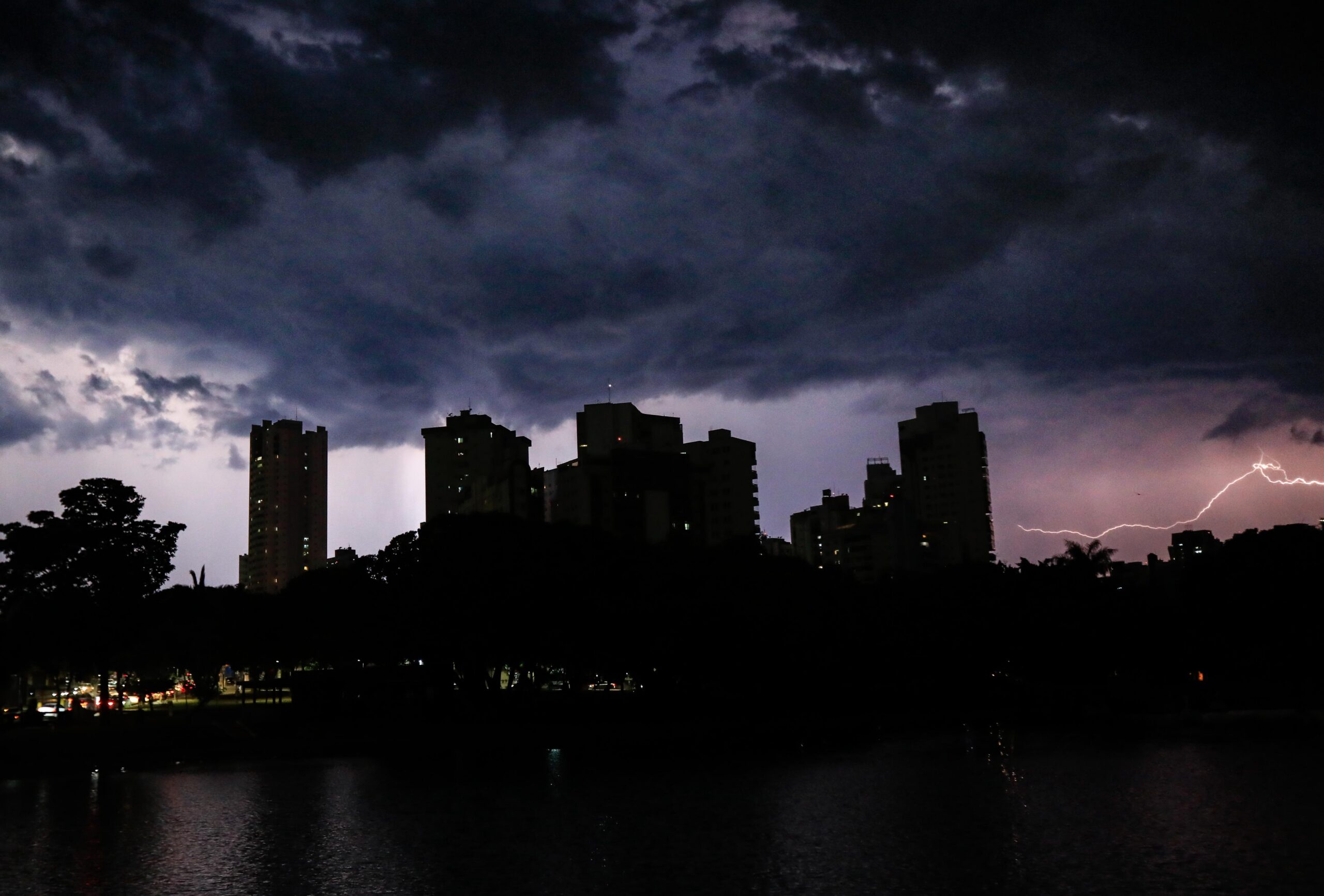 O avanço de uma frente fria, vinda do Sudeste do Brasil, cria condições favoráveis para a formação de chuvas que poderão vir no formato de tempestades, acompanhadas de rajadas de vento e raios