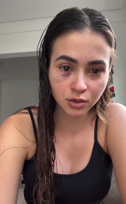 Após o crime, a suspeita foi presa em flagrante. Em um vídeo nas redes sociais, onde aparece com o olho direito roxo, a profissional deu detalhes do caso