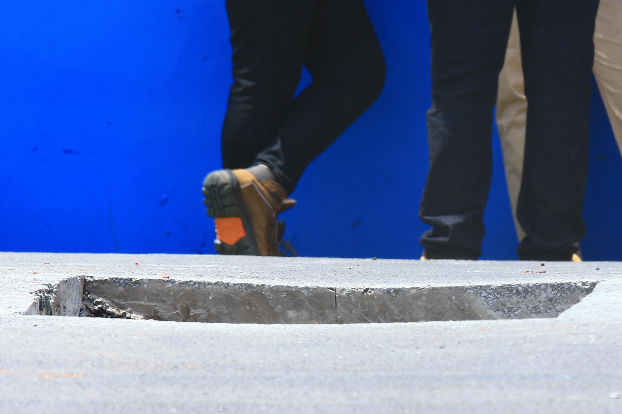 A direção de prova teve de abrir ao redor do buraco para fazer o reparo na pista