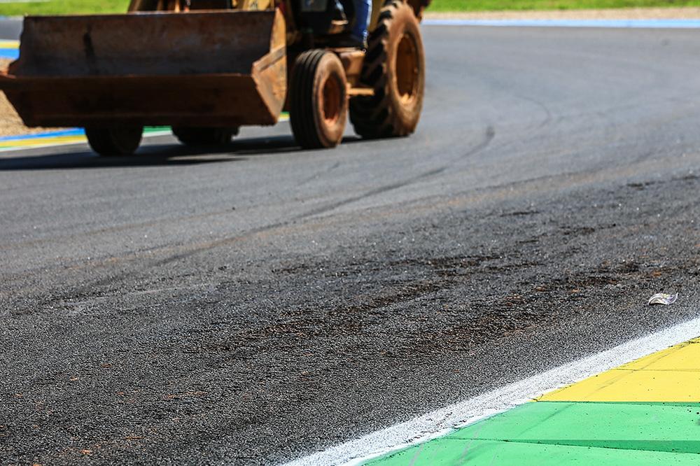 A falha ficava fora da linha de corrida e foi reparada rapidamente para a retomada das atividades. No domingo (22), o asfalto sofreu degradação localizada por causa do calor intenso e do uso da pista.