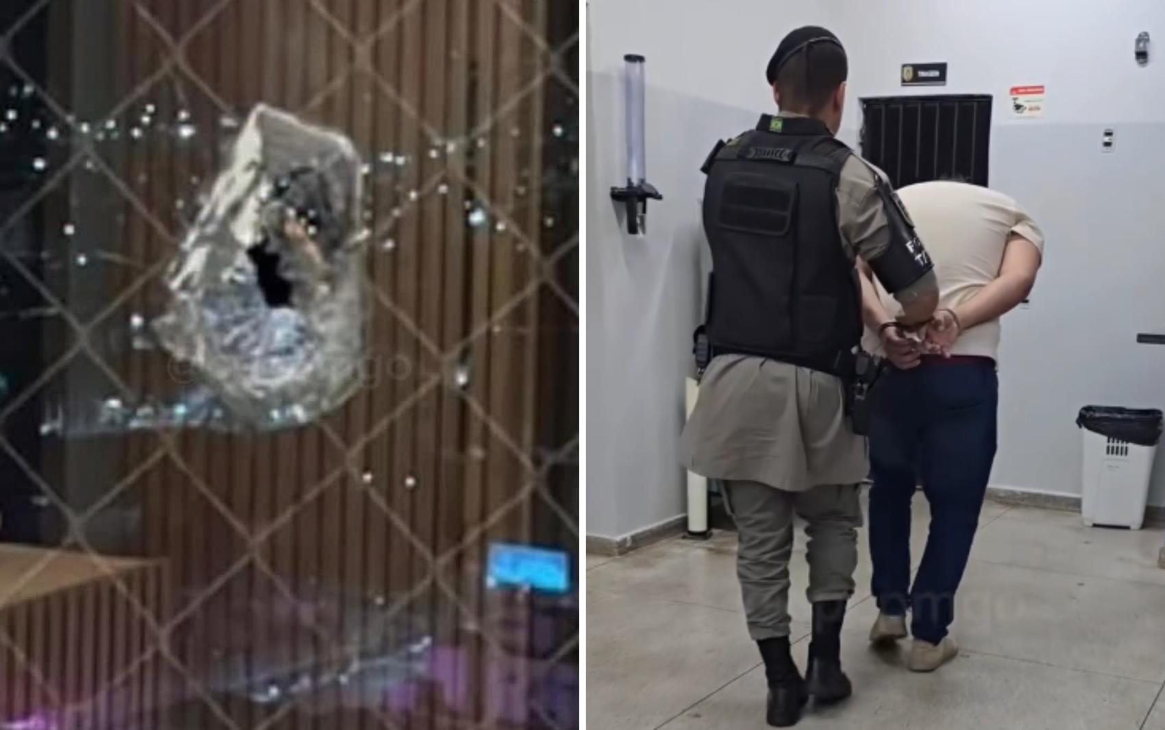 Um jovem de 26 anos disparou um tiro de dentro de um carro de luxo no Setor Marista, em Goiânia. A bala atingiu a janela de um apartamento no 24° andar de um prédio da região